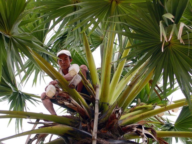 Trèo cây lấy đường thốt nốt ở Bảy Núi, An Giang. Ảnh: Ngọc Trinh.