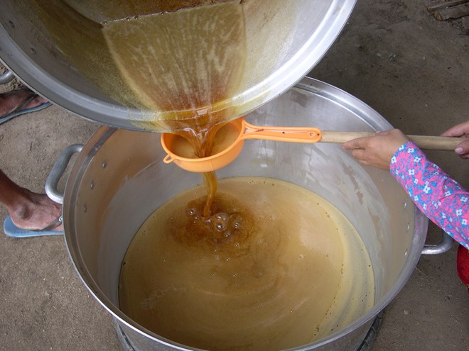 Công đoạn sản xuất đường thốt nốt để xuất khẩu đi nước ngoài phải tuân theo quy trình nghiêm ngặt. Ảnh: Ngọc Trinh.